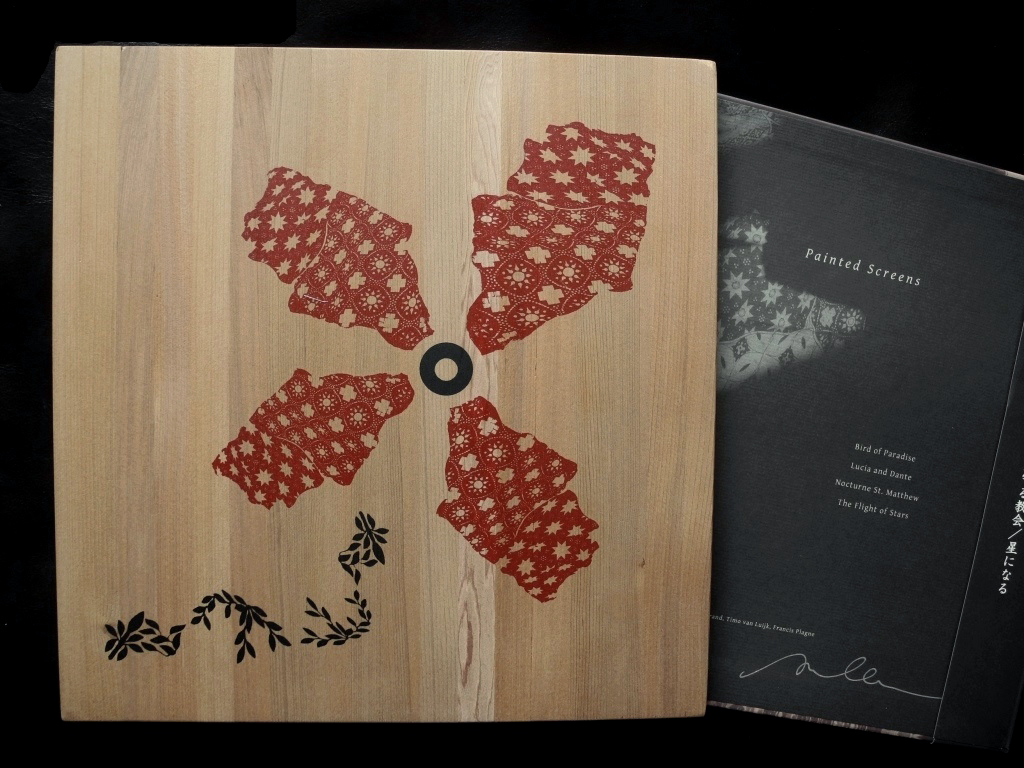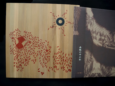 Japanese obi, insert and postcard. Entirely handmade sleeve edition of Painted